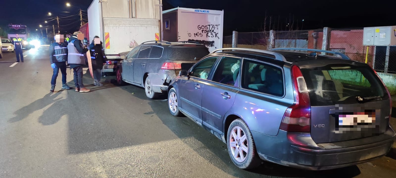 La fața locului, polițiștii au constatat că un bărbat, de 64 de ani, din Cluj-Napoca, care circula cu autoturismul pe direcția Chinteni spre Cluj-Napoca, ar fi pierdut controlul asupra direcției de deplasare, părăsind partea carosabilă, ulterior intrând în coliziune cu 2 autovehicule care se aflau staționate pe partea dreaptă a sensului de mers.