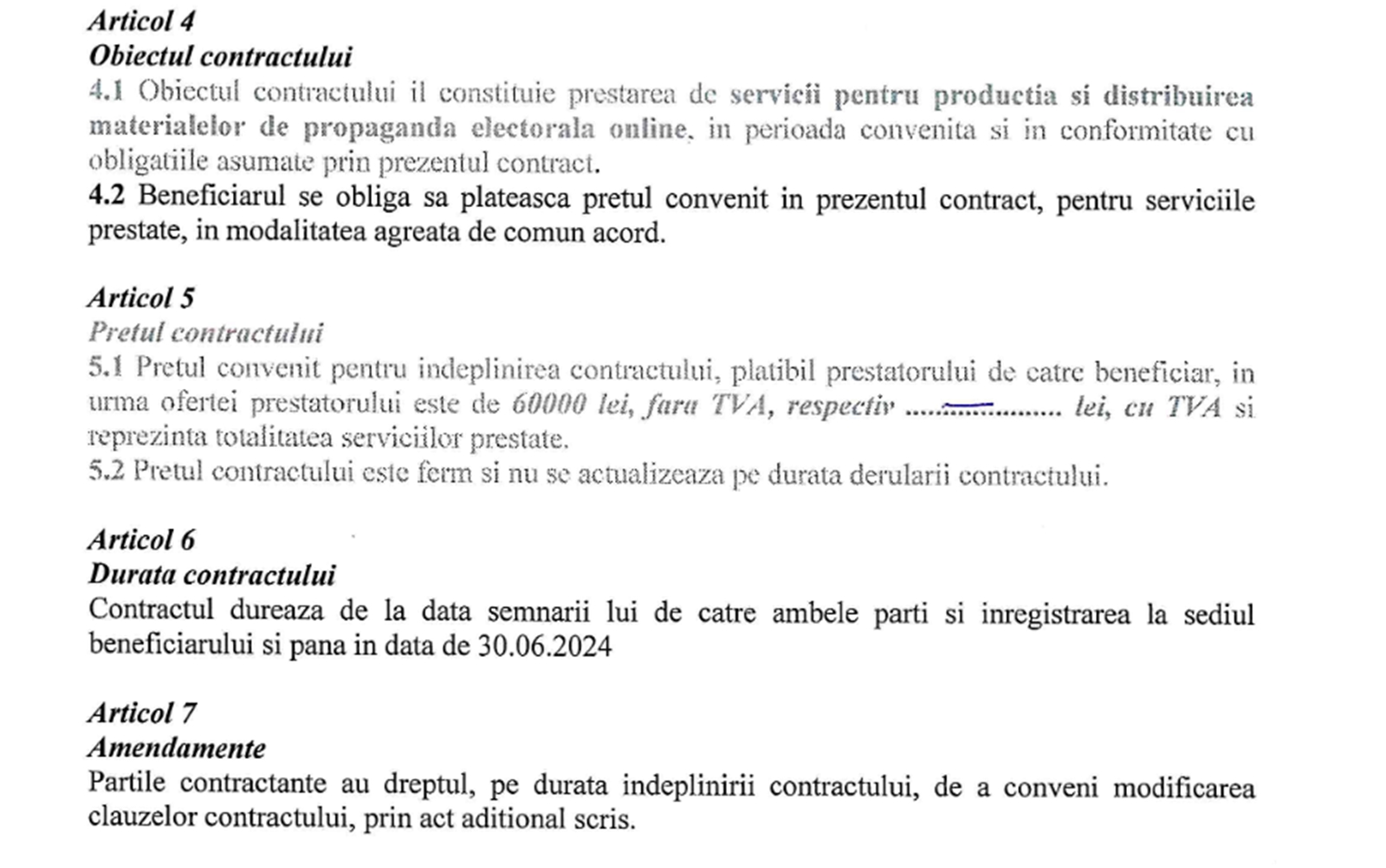 Valoarea acestui contract este de 6.000 de lei.