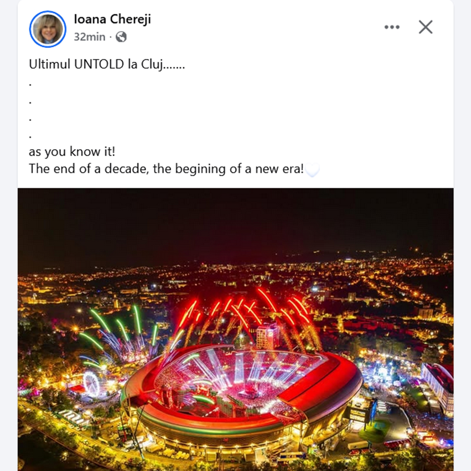 Marți seara, Ioana Chereji, directorul de comunicare al Festivalului Untold a făcut un anunț șocant. Anunț șoc.