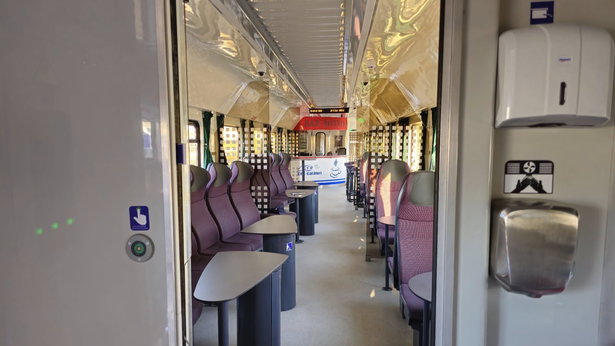 Primul vagon bar-bistro modernizat prin PNRR circulă deja de o săptămână pe ruta Brașov–Constanța și a stârnit curiozitatea călătorilor. Bistro pe șine