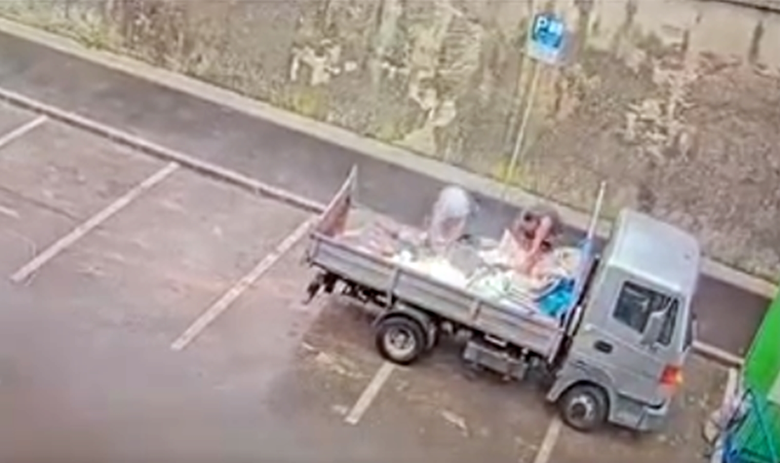Pe imagini se pot vedea doi bărbați care oprescu o mașină de transport, după care, din benă, descarcă mai mulți saci de moloz. Mizeria a fost lăsată pur și simplu acolo, iar cei doi au plecat ca și când nimic nu s-a întâmplat.