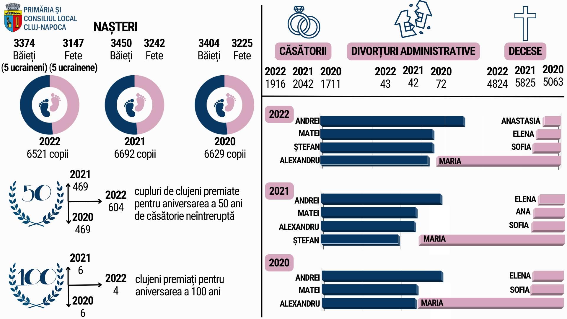 „Au fost mai puține decese decât în 2021 și 2020, mai puține nașteri decât în 2021; mai multe căsătorii decât în 2020; 10 copii ucraineni au fost născuți la Cluj-Napoca