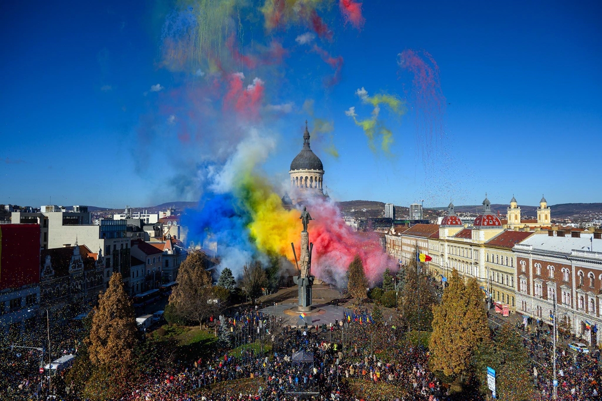 Programul continuă în Piața Avram Iancu, de la ora 11.30, unde este programată ceremonia oficială dedicată Zilei Naționale. Aceasta va include momente solemne, urmate de un scurt spectacol cu efecte speciale conceput pentru acest eveniment. Organizatorii au anunțat că zona va deveni unul dintre punctele centrale ale manifestărilor din acest an.