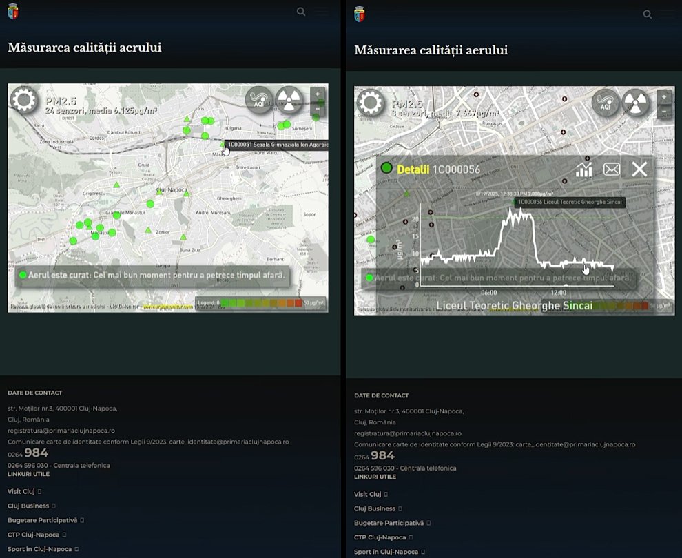 În total, până în acest moment există 24 de unități care măsoară calitatea aerului în municipiul Cluj-Napoca.