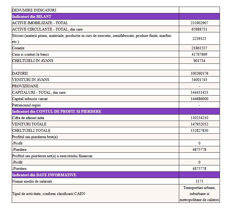 Astfel, în 2020, Compania de Transport Public a realizat o cifră de afaceri de 130.2 milioane de lei și a avut cheltuieli de 152.8 milioane de lei. În consecință, pierderea în exercițiul financiar 2019-2020 a fost de 4.87 milioane de lei, adică un milion de euro.
