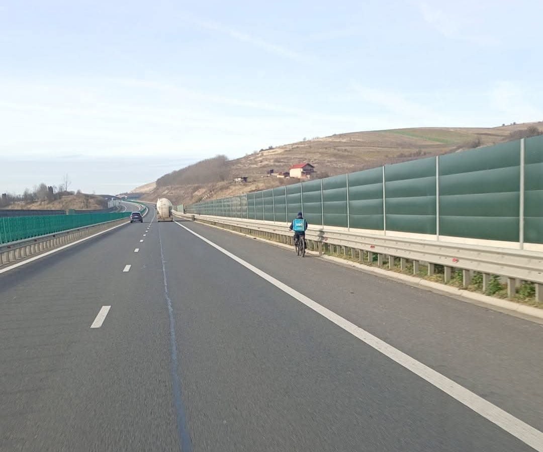 O bicicletă pe autostradă reprezintă o bombă cu ceas. Viteza diferită, lipsa oricărei protecții, reacția neașteptată a șoferilor și riscul de accidente în lanț transformă o astfel de imprudență într-o situație cu potențial tragic. În plus, banda de urgență este destinată exclusiv situațiilor critice, nicidecum pedalării către următoarea livrare.