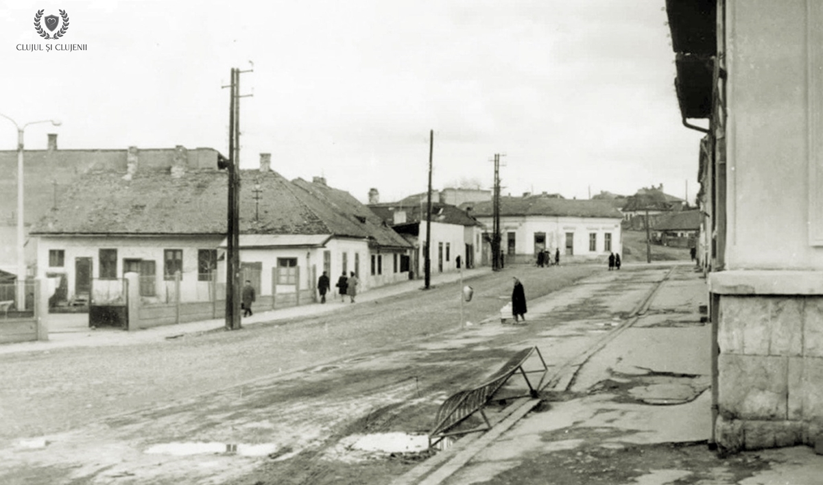 Clădiri joase, acoperișuri înclinate, trotuare simple și câteva siluete care merg încet. Așa arată Cipariu în fotografia veche, mult înainte ca traficul, blocurile și șantierele să transforme complet zona. Pe colț, în stânga, se vede casa despre care unii clujeni spun că ar fi fost stația troleibuzului 3, într-un timp în care orașul circula altfel, mai lent și mai liniștit.