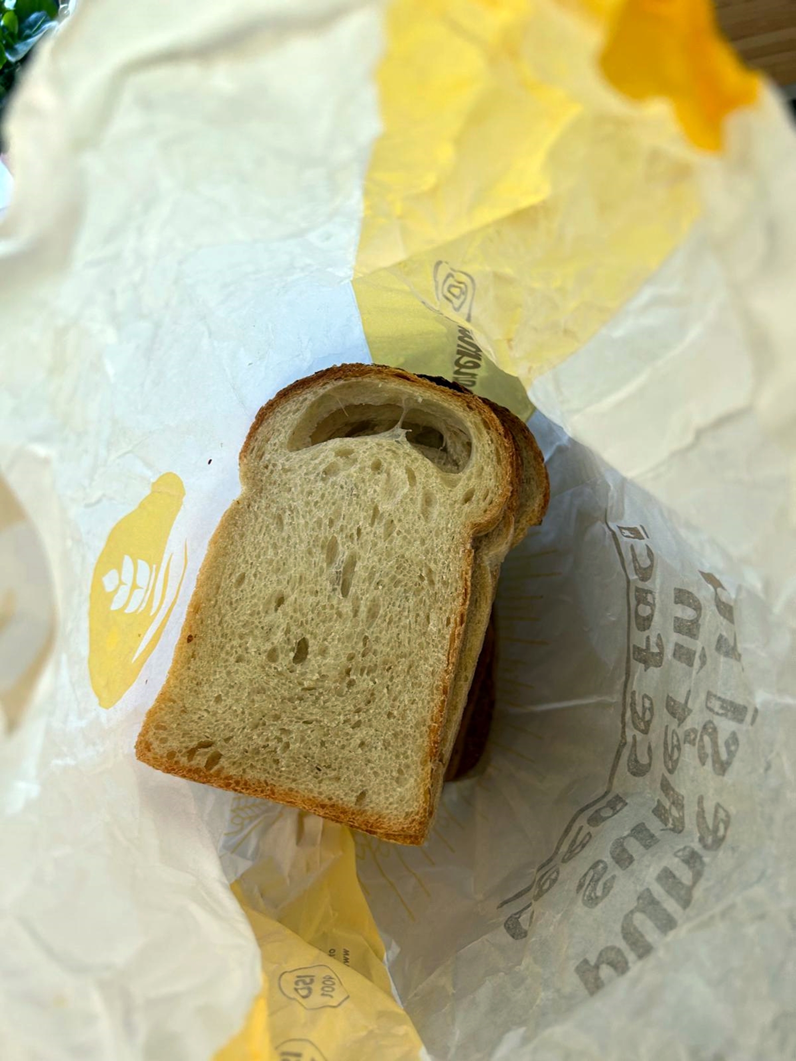 Un clujean ne-a trimis la redacție mai multe imagini cu o pâine țărănească, brand Panemar. Deși foarte scumpă, zece lei pentru un astfel de produs, pâinea are găuri destul de mari și nu prea pare arată bine.