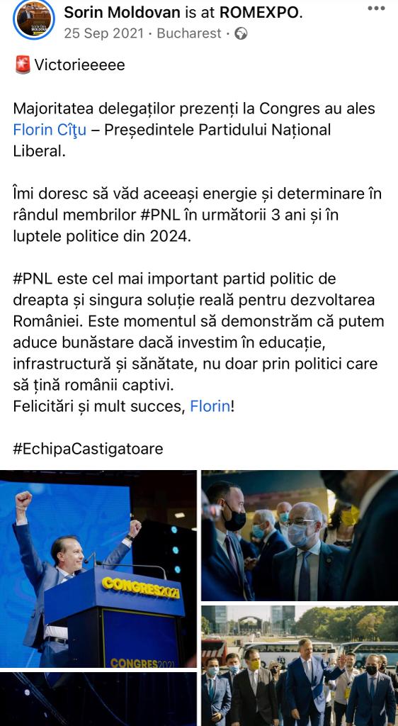 În cursul zilei de vineri, am aflat de la deputatul Moldovan de ce susține debarcarea lui Florin Cîțu, din funcția de președinte al PNL. Același Moldovan striga ”victorieeee”, la finalul lunii septembrie 2021, când Florin Cîțu a fost ales președinte al PNL.