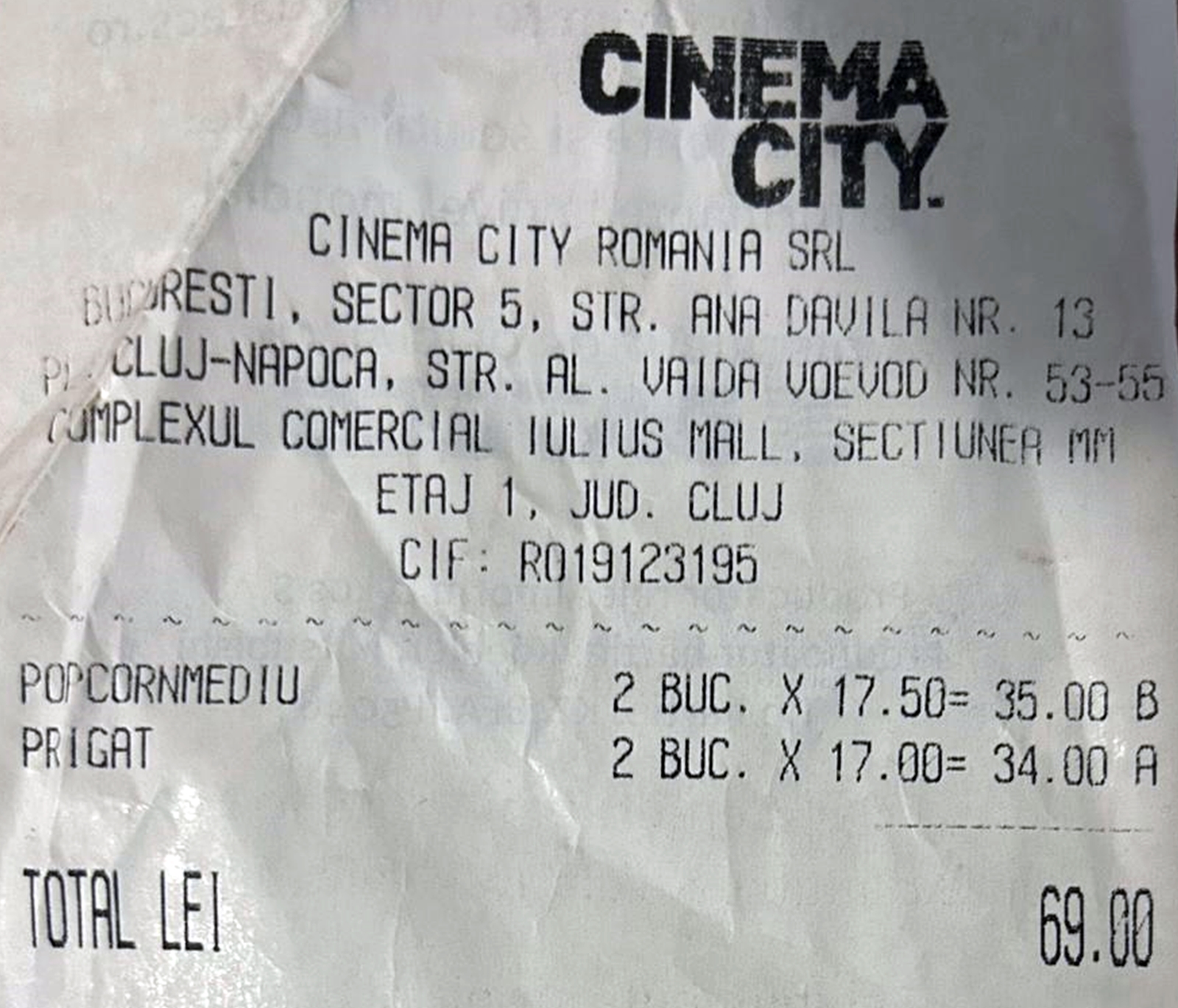 La Iulius Mall Cluj, funcționează un Cinema City, unde prețurile sunt complet nelalocul lor, comentează un clujean.
