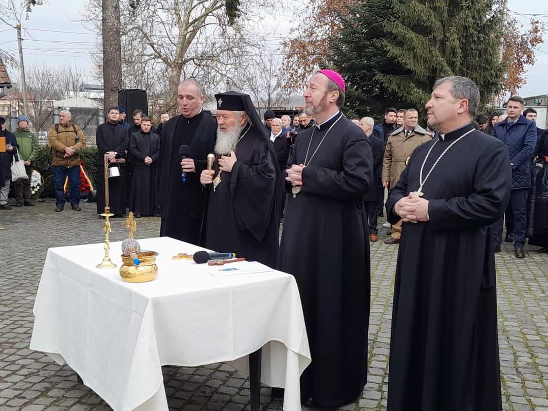 Momumentul a fost sfințit cu o slujbă sustinută de mitropolitul Clujului, Andrei, alături de Episcopul Greco-Catolic, Claudiu Pop.