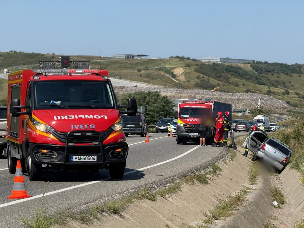 „Pompierii din cadrul Detașamentului 1 Cluj-Napoca au intervenit în cursul zilei de astăzi la un accident rutier petrecut pe centura de ocolire Vâlcele-Apahida.